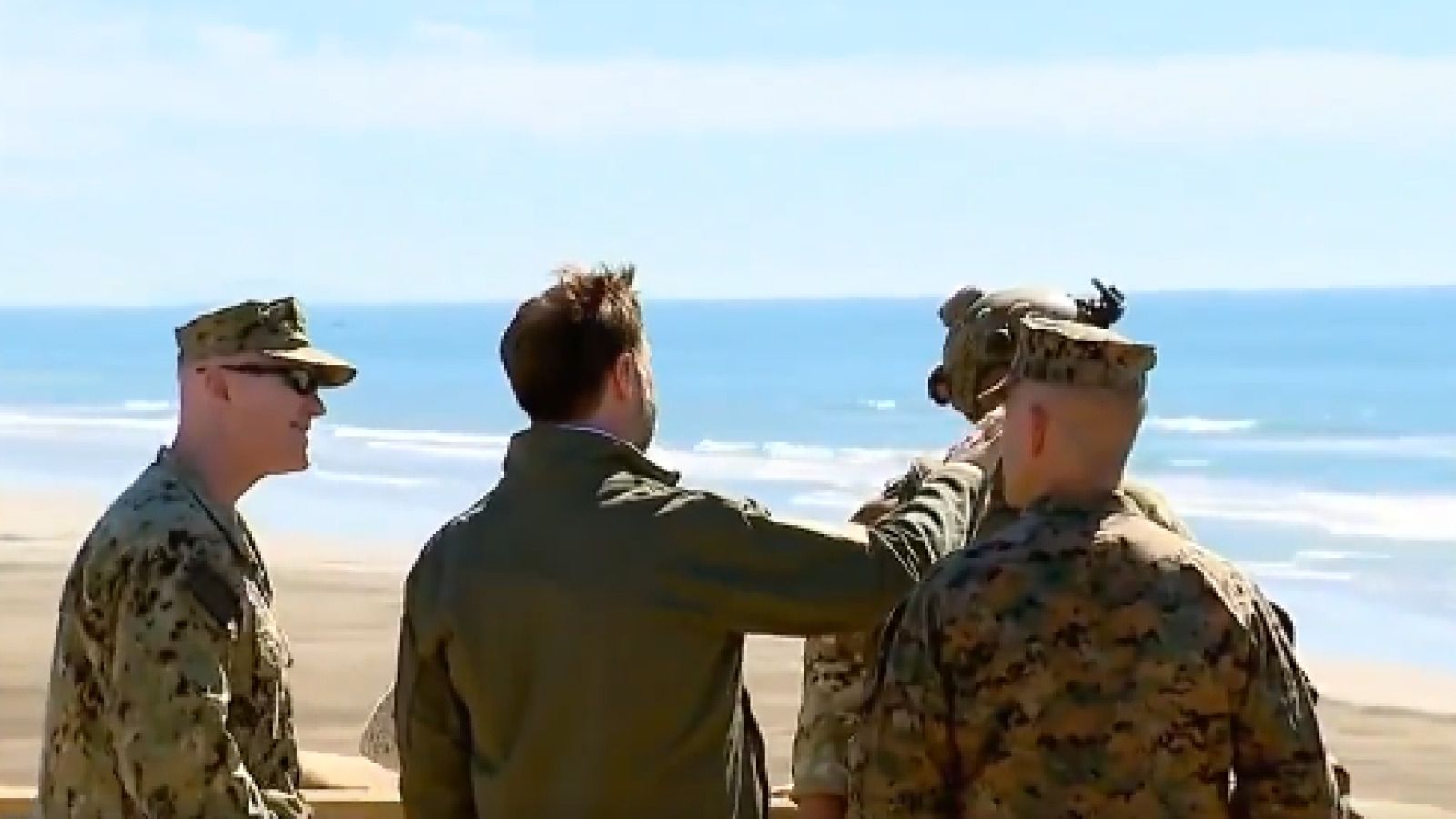 Vice President JD Vance and second lady Usha Vance participate in a briefing during an amphibious capabilities demonstration on Red Beach at Camp Pendleton, California, on Saturday as part of the Marine Corps’ 250th anniversary celebrations. Photo: Oliver Contreras/AFP via Getty Images